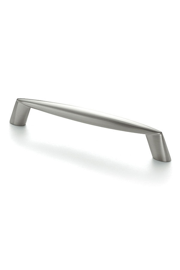 This decorative satin nickel cabinet pull offers the perfect finishing touch.
